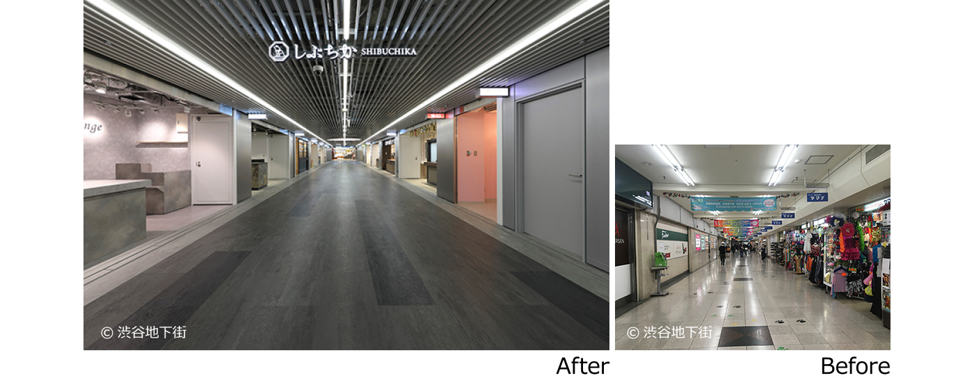 1957年にJR渋谷駅の地下に開業した地下街、略称「しぶちか」。 2021年にリニューアルオープンしたしぶちかの床には、エービーシー商会のゴムタイル「ノラメント」が採用されました。