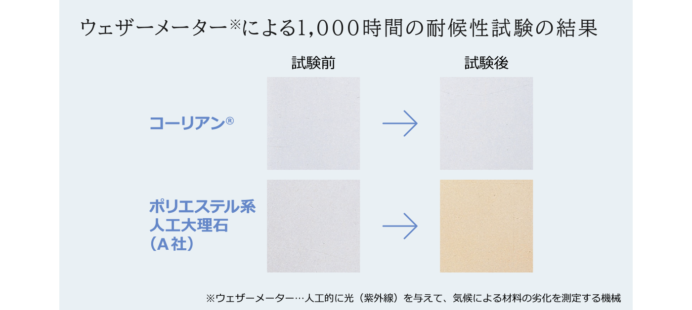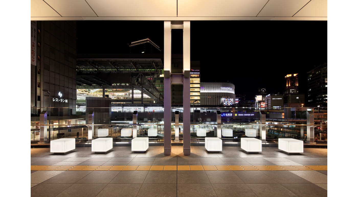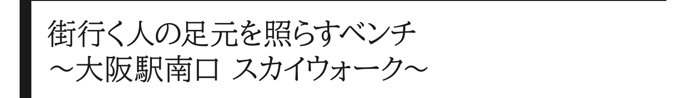 大阪駅南口にある、駅と百貨店を繋ぐ歩道橋「スカイウォーク」には、アクリル系人工大理石「コーリアン」でつくられたベンチが設置されています。 カラーバリエーションが豊富で加工もしやすいことから、洗面カウンターやテーブル、店舗の什器などさまざまなものに使われているコーリアン。それだけでなく、太陽光や紫外線にも耐えうるため、屋外のベンチにも最適なんです※。 ※屋外の使用環境によっては退色することがあります。退色の度合いは色によって異なります。