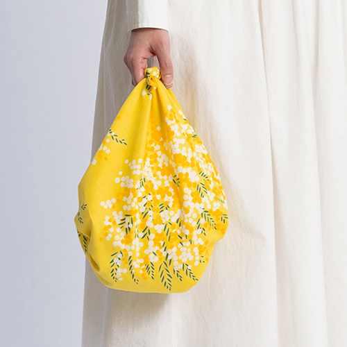 | 昨年春、弊社のふろしきを販売いただいているギフト・雑貨店様で、最も多く見かけたのは「ミモザシリーズ」でした!嬉しい限りです。また、用途として70cmサイズはダントツで“バッグ使い”、50cmサイズは“お弁当包み”や“ブックカバー”の声が多く寄せられました。 |