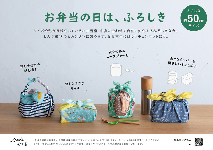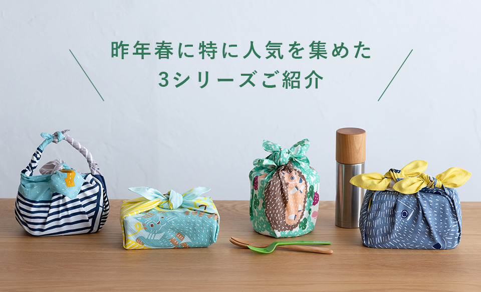 定番商品として「kata kata」シリーズを展開いただいている店舗様では、春になると「50 kata kata」シリーズをメインコーナーに置いていただくケースが多く見られました。 用途として人気なのは“お弁当包み”。また、「プレゼントした相手が、お弁当包みとして愛用してくれている!」というお声もよく聞きます。 |