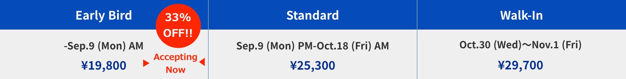 ~ 33% OFF from Walk-In Rate ~ Early Bird Visitor Registration until Sep. 9 11:59 AM (JST) |