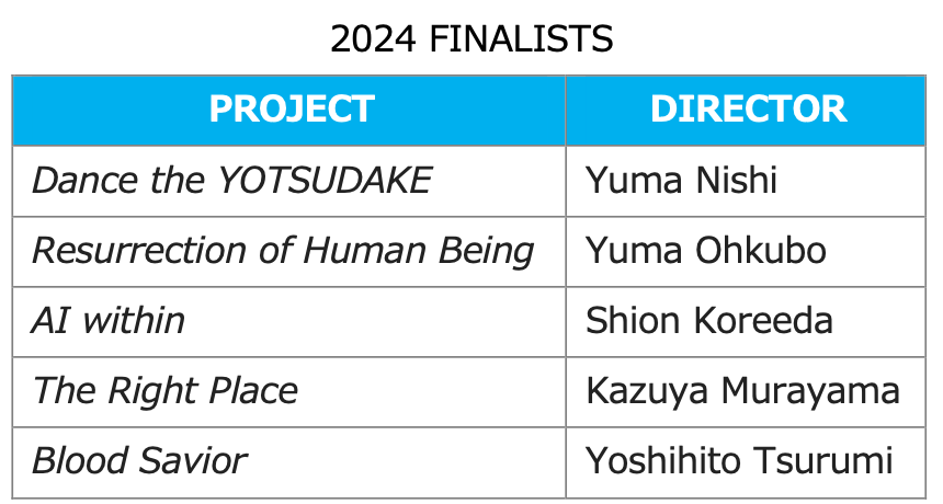 Producer of TOKYO VICE and SENSE8 Masterclass of Alex Boden Seven Directors Selected for the Pitching Contest For young filmmakers looking to take their first steps abroad Now in its seventh year, this event will take place at TIFFCOM 2024, and co-hosted by Motion Picture Association(MPA) representing the six major film studios in the U.S., Digital Hollywood University(DHU) and TIFFCOM, consists of two sessions: the first part is a masterclass seminar with experts from film industry, and the second part is a pitching contest, with a total of seven participants. Five are selected from the submitted projects, and two are the top performers from the 2024 KAFA-TUA Collaboration Film Development Workshop* jointly organized by Japanese and Korean art universities under the Agency for Cultural Affairs. The best projects from the contest will be awarded overseas study trips.