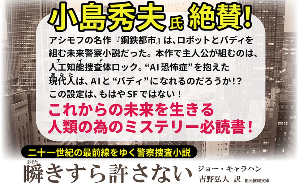 【創元推理文庫】(国内ミステリ) ◇『あなたには、殺せません』石持浅海 「犯人だって、好きで犯罪に走ろうとしているわけではありません。必ず迷いがあります。その段階でうちに来てもらえれば、犯罪の発生を未然に防ぐことができます」――そのNPO法人には、罪を犯すか悩む人が相談にやってくる。相談員はそんな犯罪者予備軍たる人々から聞き出した犯行計画の穴を次々と指摘していく。不備を突かれた者たちの殺意は、果たして本懐を遂げるのか。犯罪発生を未然に防ぐ!? 新しい形の倒叙ミステリ短編集!