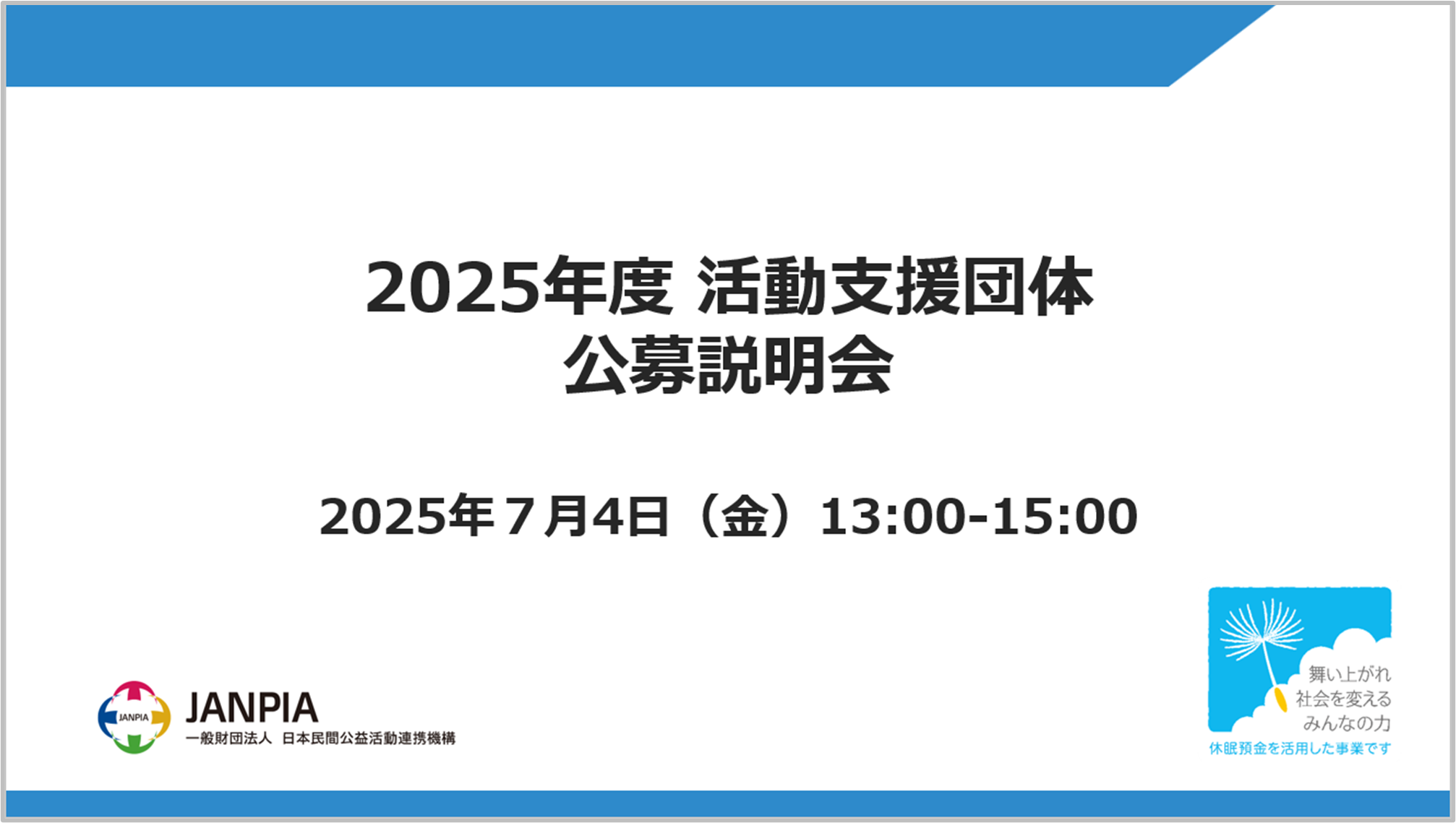 <今回の注目情報> ・2025年度「活動支援団体の公募説明会」動画を公開 ・実行団体・支援対象団体の公募「7件」公開中!
