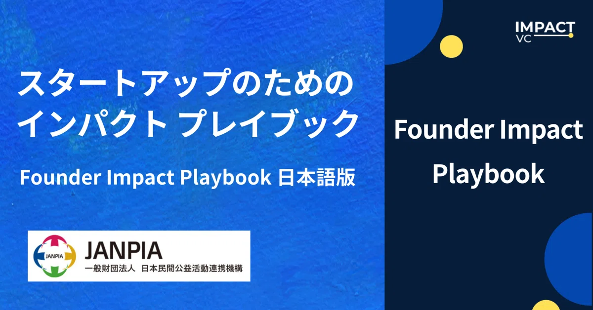 JANPIA出資事業部では、英国のBetter Society Capital(以下、BSC)が設立したImpact VCコミュニティにより作成された「Founder Impact Playbook」の日本語版を公開しました。 本プレイブックは、インパクトを志向するスタートアップが、事業の各段階でインパクトをどのように組み込み、測定し、報告していくかを具体的に示した実践的なガイドです。 BSCの許可を得て、JANPIA出資事業部が日本語訳を作成しました。 スタートアップの創業期からスケール、エグジットに至るまで、インパクトをどのように設計し、実行していくかの道筋を 示しています。 (JANPIA出資事業部note)