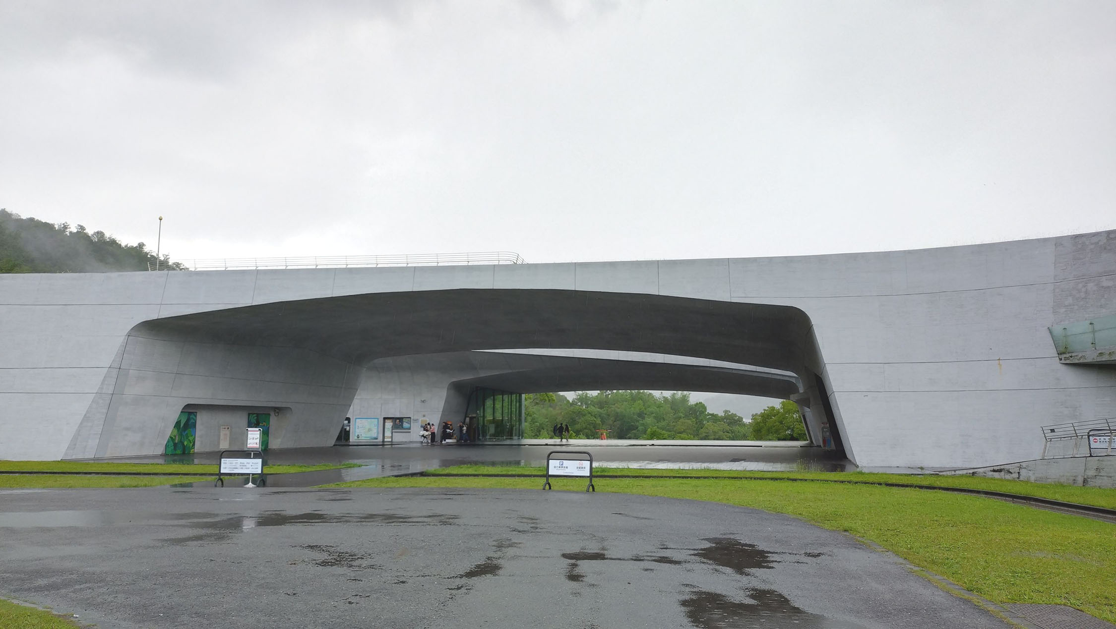 【題名】向山ビジターセンター 日月潭(台湾台中) 【氏名】渡邉 佳代 (福岡地域会) あいにくの雨空でしたが、遠目から見ても美しい建築でした。建築家團紀彦氏のデザインです。建物は一部しか写真に収まりませんが、流線的な大規模建築で、緑化された屋上からは、日月潭の全体を臨むことができます。 日月潭には台中駅からはバスも出ていて、訪問しやすいアクセスです。